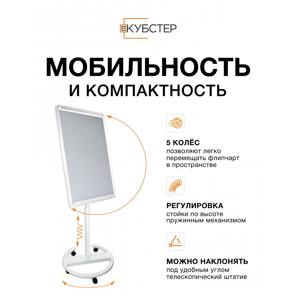 - 5 колес позволяют легко перемещать флипчарт в пространстве