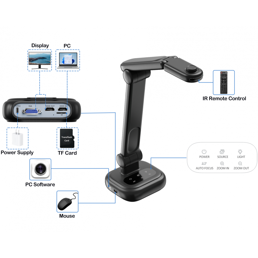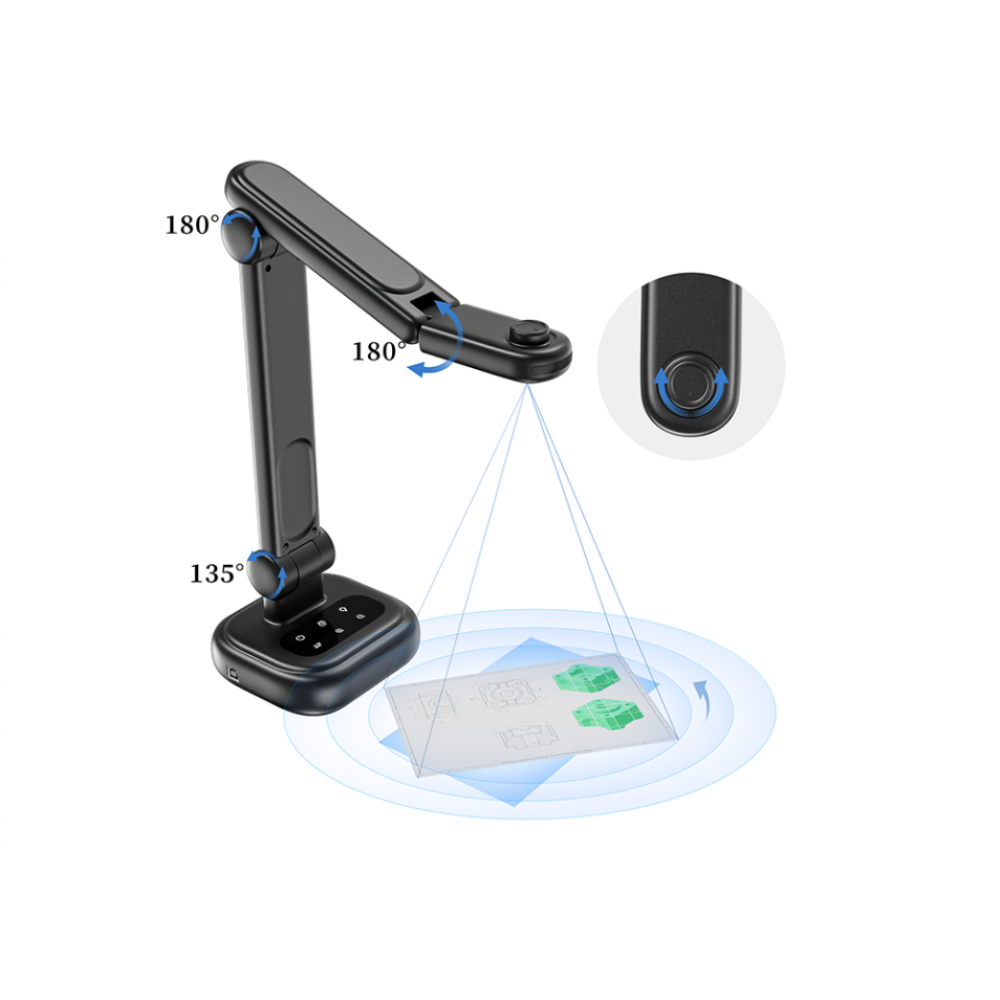 Мощная 8-мегапиксельная документ-камера с регулировкой положения, идеально подходит для учебных материалов различных размеров и материалов.