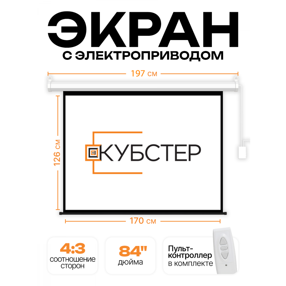 Экран для проектора c с электроприводом Кубстер, диагональ 84 дюйма, 170х126 см (4:3)