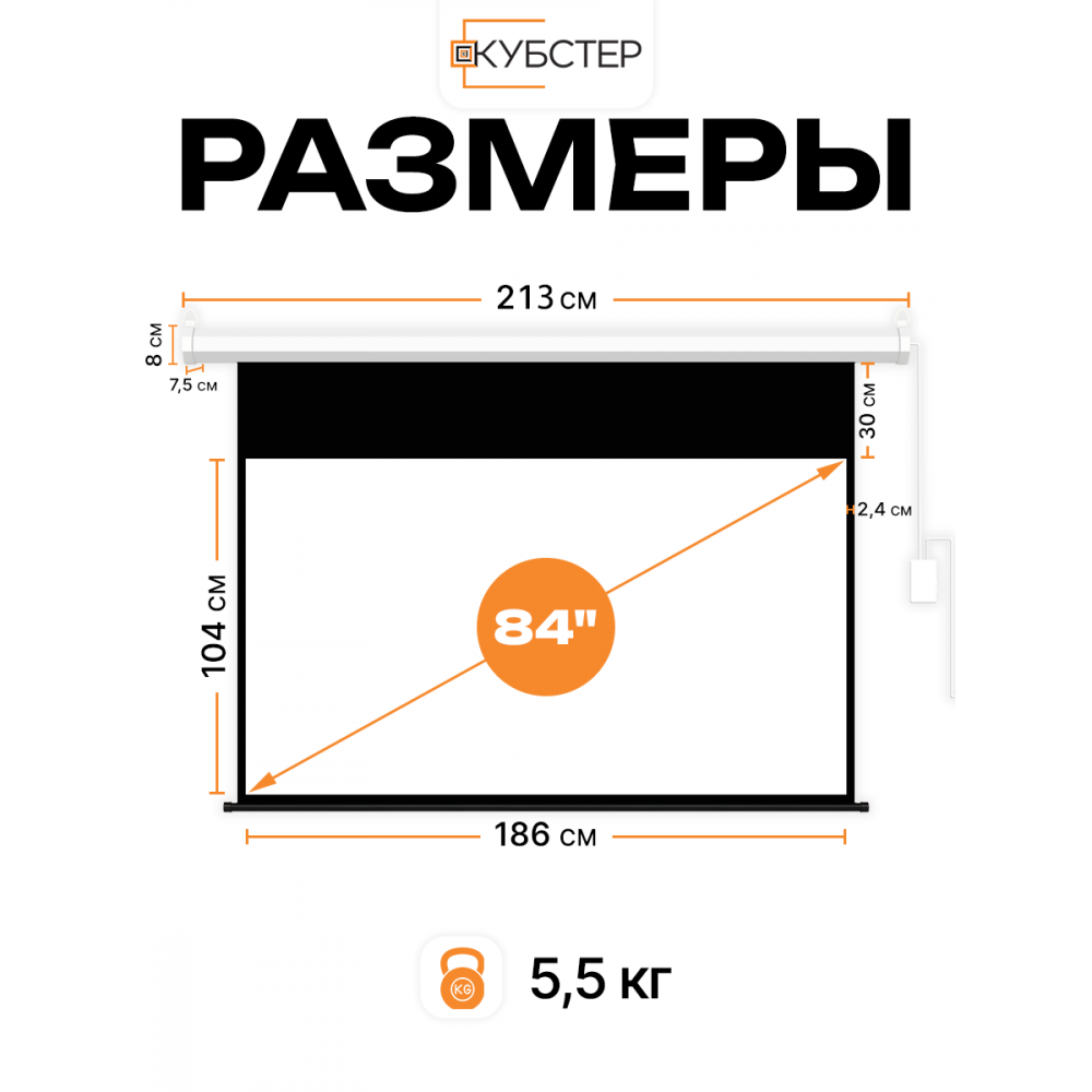 Экран для проектора c с электроприводом Кубстер, диагональ 84 дюйма, 186х104 см (16:9)